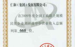 2009年度全國工商聯(lián)上規(guī)模民營企業(yè)調(diào)研排序中營業(yè)收入總額列668位