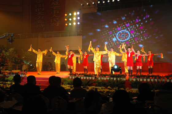 晚會結束時,光臨晚會的樟樹市四套班子領導與集團領導一起走上舞臺,熱烈祝賀演出圓滿成功并與全體演職人員合影留念。